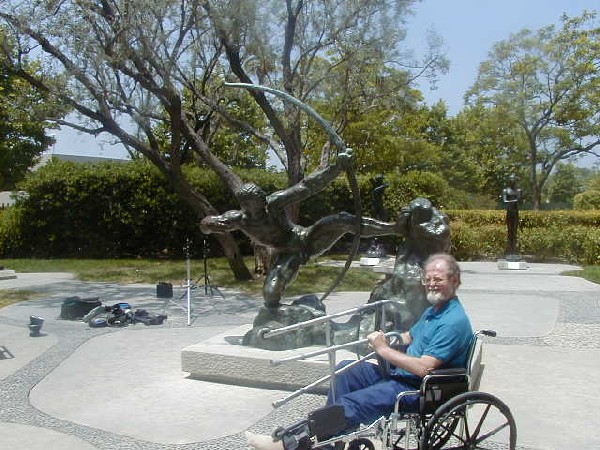 2001: This picture of Larry was taken on 25/5/01 at the Los Angeles County Museum of Art. Larry, and Jerry Pournelle were visiting the museum to do some research for the forthcoming BURNING TOWER novel. Larry is pictured next to the Statue of Herucles.