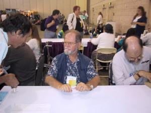 2001: This picture of Larry, from in the Autograph line at PhilCon on 1/9/01 Picture by Steven R. Station. Picture courtesy of Deltos Fleet Computing