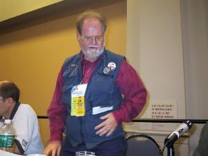 2001: Closeup of Larry joining or leaving the panel at PhilCon on 2/9/01 Picture by Steven R. Station. Picture courtesy of Deltos Fleet Computing