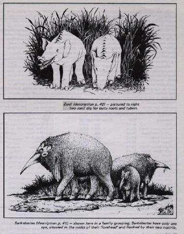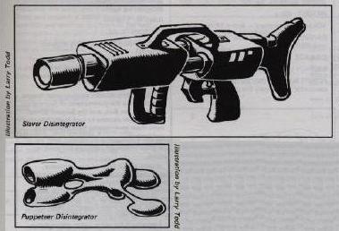The Ringworld Role Playing Game and the Ringworld Companion supplement, from which these images were taken was released in 1984 by Chaosium Inc., a company who have released many role playing game packs, probably the most famous being Runequest. The game was sold as a boxed set containing complete rules (spread over several books), background material, a sample scenario, cardboard fold-up figures, and dice. It was quickly supported by the Ringworld Companion book, (from which images on these pages were taken) included new lifeforms, technologies and scenarios. The background essays for the game were very detailed and impressed Larry so much that he used information from them for a Man Kzin War series "writers bible".