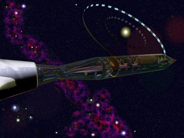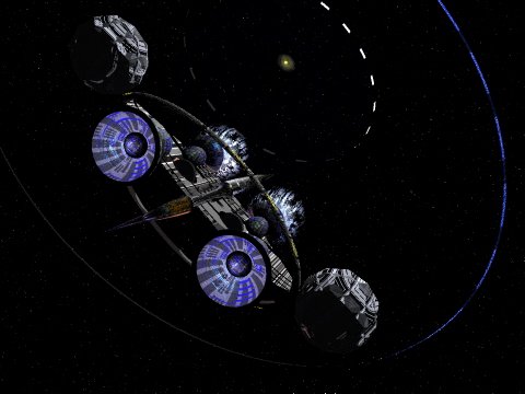 Ships: Another shot of the Lazy Ass, this time approaching the Ringworld
