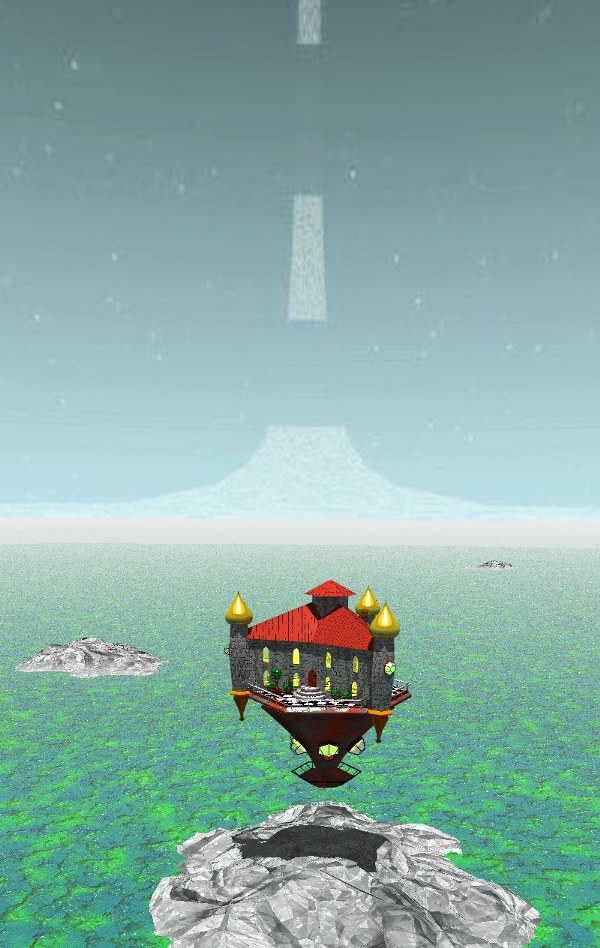 Buildings: These images of floating buildings courtesy of John C. Atkeson. John used Ray Dream 5 to create these fantastic images. In the second and third images, the building hovers above a patch of exposed scrith on the Ringworld surface.