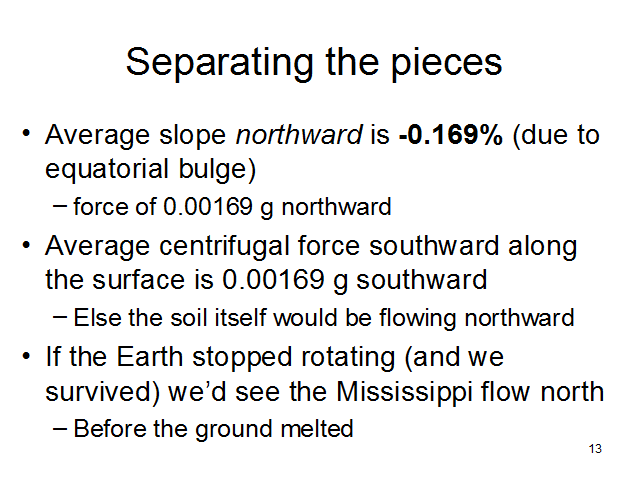 Here's how the total force decomposes into gravity and centrifugal force. When calculated along the surface of the Earth, the force of gravity and the centrifugal force are much, much larger than the residual force the remains after they nearly cancel out - without the centrifugal force, the Mississippi would flow very rapidly northward, emptying the Gulf of Mexico into the center of North American.