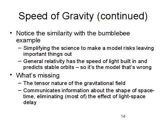 Therefore, the model in which van Flandern has shown the flaws, isn't GR - he's oversimplified the theory to do his calculations