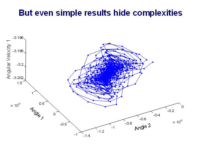 NOTES But plotting position and velocity (as before) sampled once per cycle shows a complex pattern - almost a double cone, with no exact repetition.