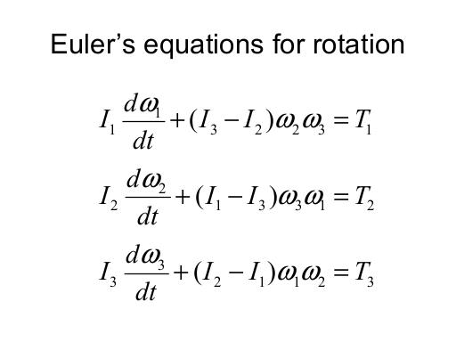 Since we're talking about rotation, let's look at Euler's equations for rotation. These are in what is called the "body frame" meaning that the rotations, torques, and moments of inertia are all fixed to the rigid motion that is rotating. I1, I2 and I3 are the moments of inertia around the body's three principal axes. If there are no torques, then it's pretty clear that steady rotation is only possible around one of the principal axes; otherwise you'll have "tumbling" or "precession" in which the axis around which the body is rotating is constantly changing (though angular momentum is still conserved)