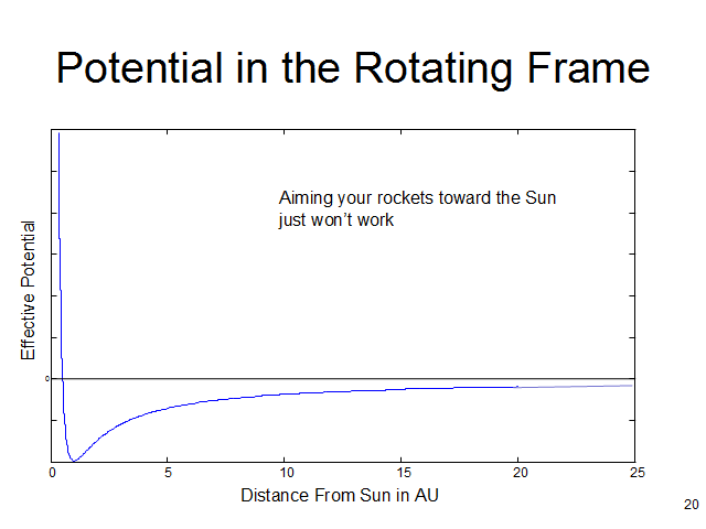 So how do you get to the Sun - apply your thrust to diminish the angular momentum of the system.