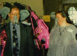 1999: "The Fithp are Invading": Larry Niven and Carol Phillips at ConText, October 1999. Costume design by Carol Phillips
