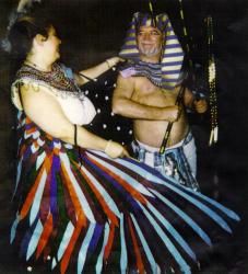 1997: Carol Phillips and Larry Niven as Isis and Osiris, an homage to Roger Zelazy and _Creatures of Light and Darkness_. Taken at ConQuesT28, Kansas City, 1997, where they won the costume contest. Costume design and execution by Carol Phillips.