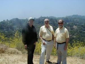 1999: Tor SF Editor Bob Gleason, Larry Niven and Jerry Pournelle at the top of Jerry's Hill taken in August 1999. Used with permission from Jerry Pournelle.