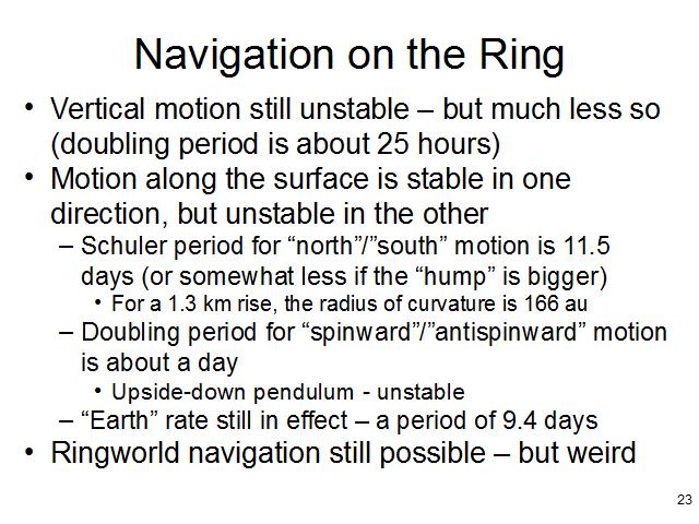 The Ringworld navigation problem is like the Earth's, only turned on its side. Now some horizontal motion is stable, and some is not.