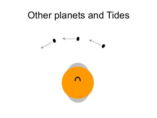 The other positions of the orbiting satellite relative to the tidal bulge of the primary are possible, however. If the satellite is below the primary's synchronous orbital radius, the satellite will always be pulling the tidal bulge in the same direction as the primary's rotation - speeding the primary's rotation up, while as the same time, slowing the satellite, putting the satellite into a lower, faster orbit. This is not the long-term situation we saw earlier - in particular, because the closer the satellite is to the primary, the stronger the tidal effects become. The ultimate result is a satellite that crashes into a (now-faster rotating) planet, or a satellite that breaks up into a ring of objects too small to experience (or cause) much tidal force; the rings around Jupiter, Saturn, Uranus and Neptune likely resulted from this kind of situation.