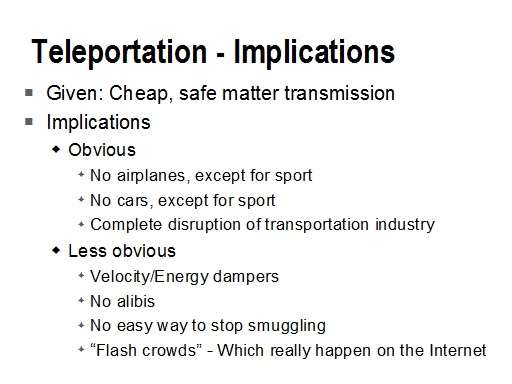 Here's another simple premise: Teleportation - it's not very likely but what if it were possible?