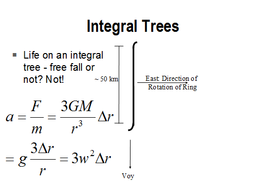 One of the life forms common in the Ring is the Integral tree. It's pretty big - people actually live on it. Now when people are simply in the Smoke Ring they're in free fall, but what if they live on a tree? It turns out that tides give an equivalent to gravity.
