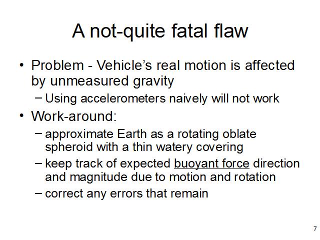 In the absolutely general case, this problem is unsolvable - but fortunately we don't have to navigate in an arbitrary gravity field. The inertial navigator knows the direction and magnitude of the force opposing gravity (the buoyant force) at the start of the trip quite well - and updates to that direction and magnitude can be calculated from a model of the earth as a rotating oblate spheroid (and deviations from that model can be corrected in part by use of gravity maps).