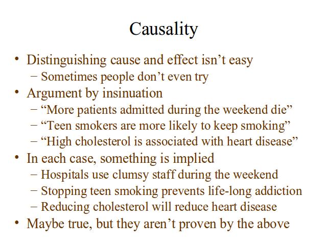 A member of the audience corrected me about the cholesterol/heart disease connection - apparently the correlation that was noticed was between high cholesterol and heart attack fatality.