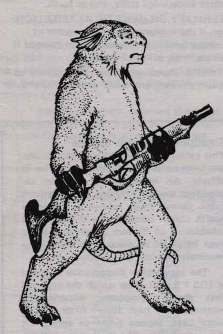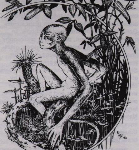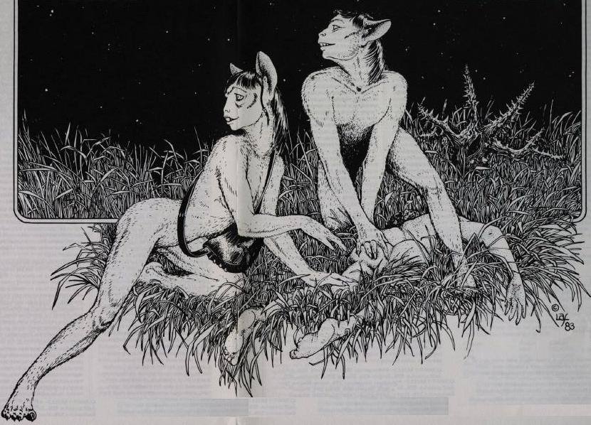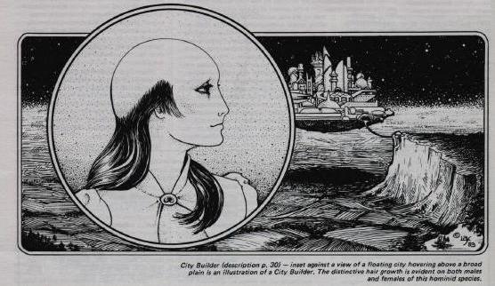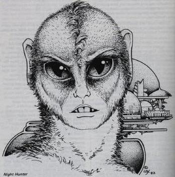 The Ringworld Role Playing Game and the Ringworld Companion supplement, from which these images were taken was released in 1984 by Chaosium Inc., a company who have released many role playing game packs, probably the most famous being Runequest.  The game was sold as a boxed set containing complete rules (spread over several books), background material, a sample scenario, cardboard fold-up figures, and dice. It was quickly supported by the Ringworld Companion book, (from which images on these pages were taken) included new lifeforms, technologies and scenarios. The background essays for the game were very detailed and impressed Larry so much that he used information from them for a Man Kzin War series "writers bible".