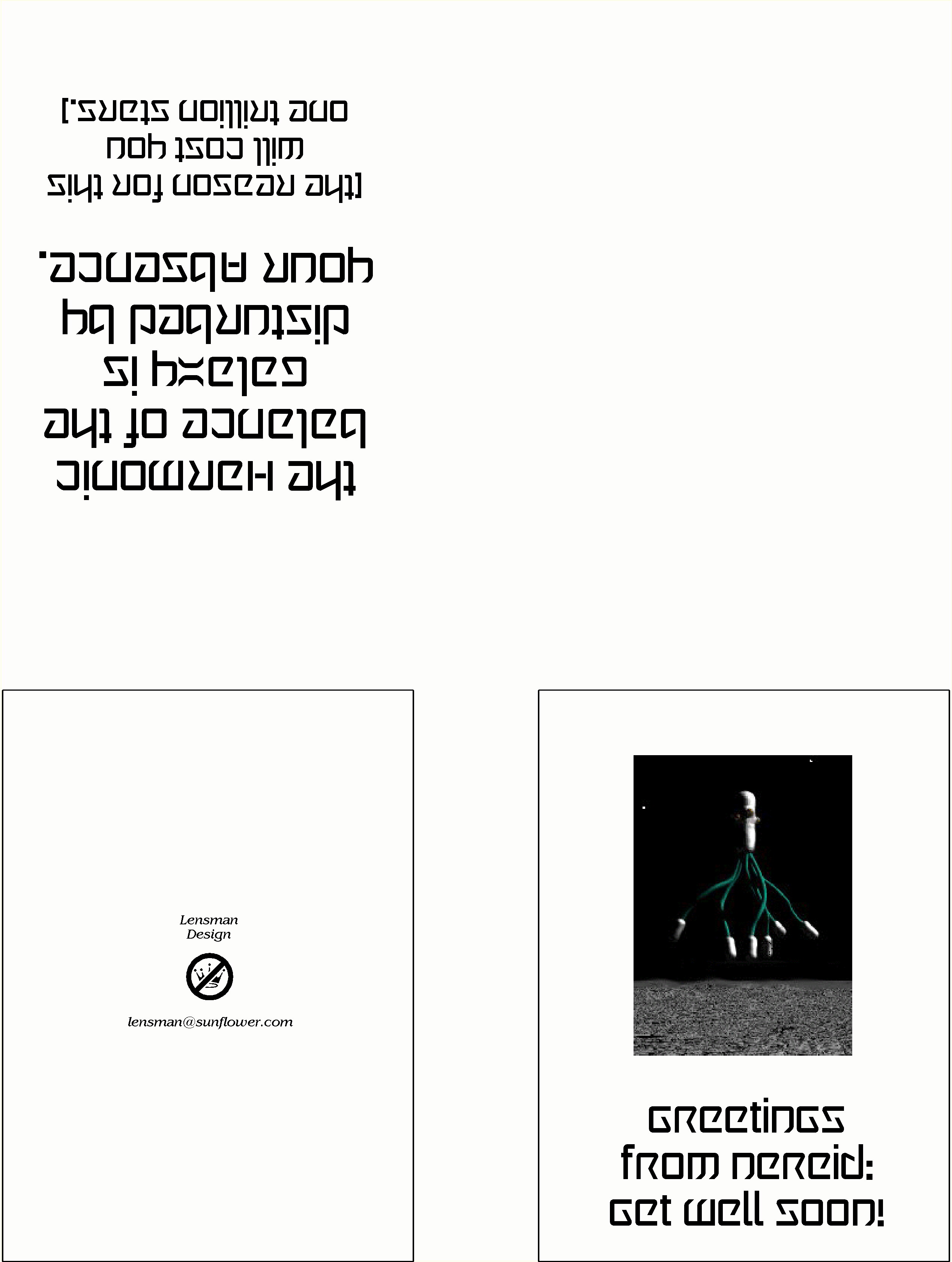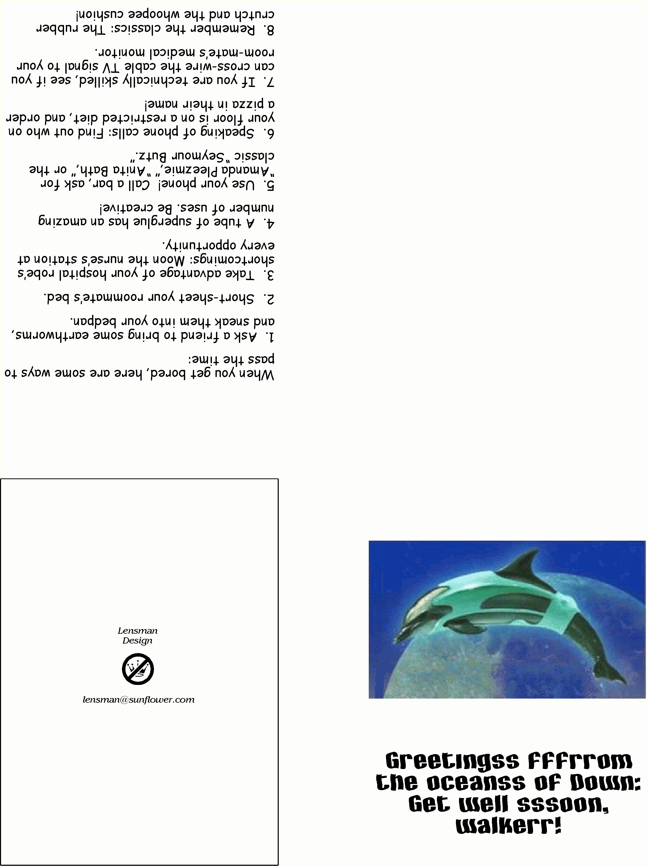 FRONT: "Greetingss fffrom the oceanss of Down: Get well sssoon, walkerr!"