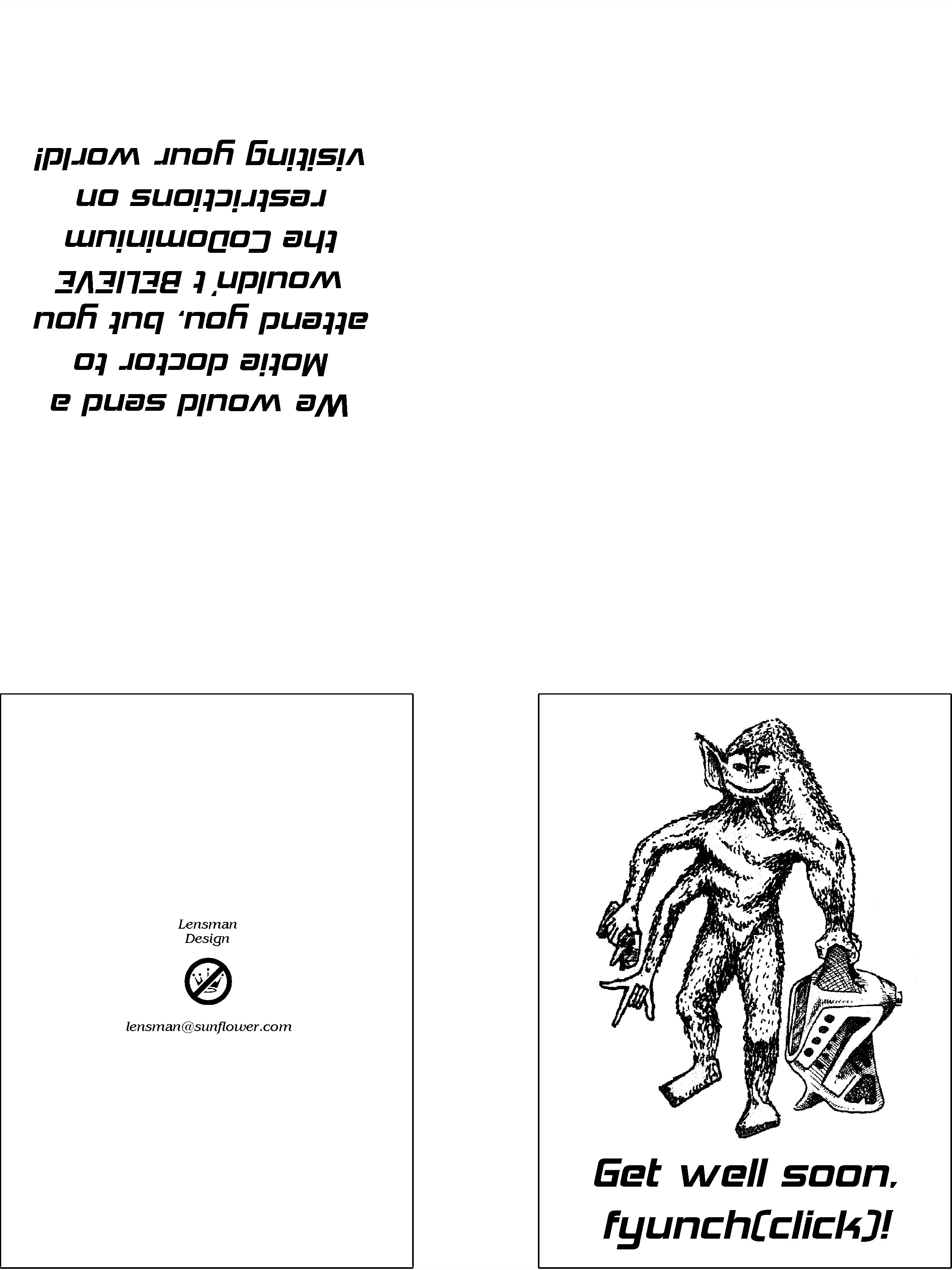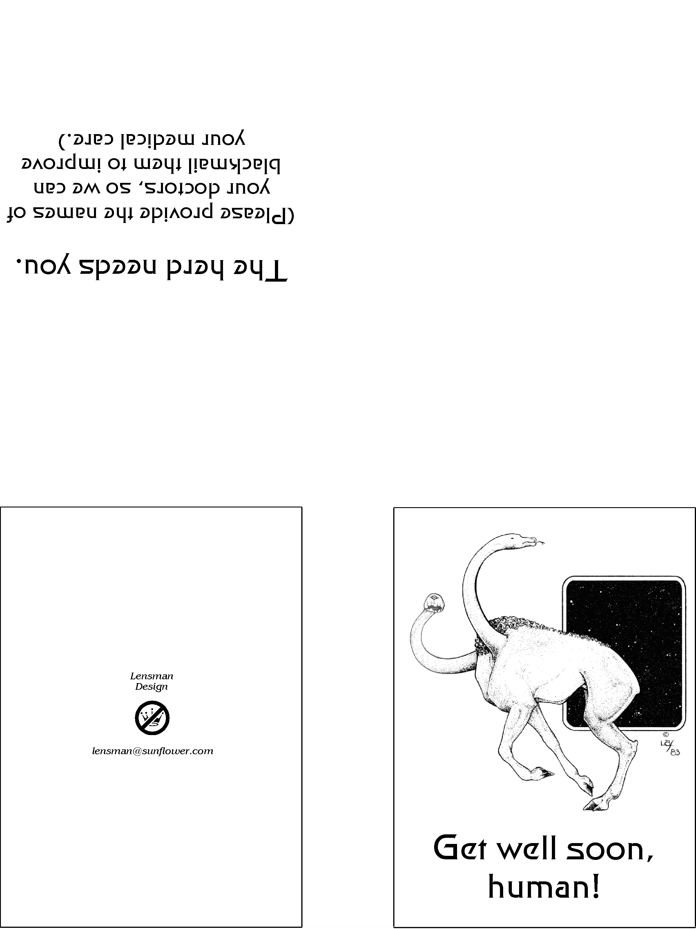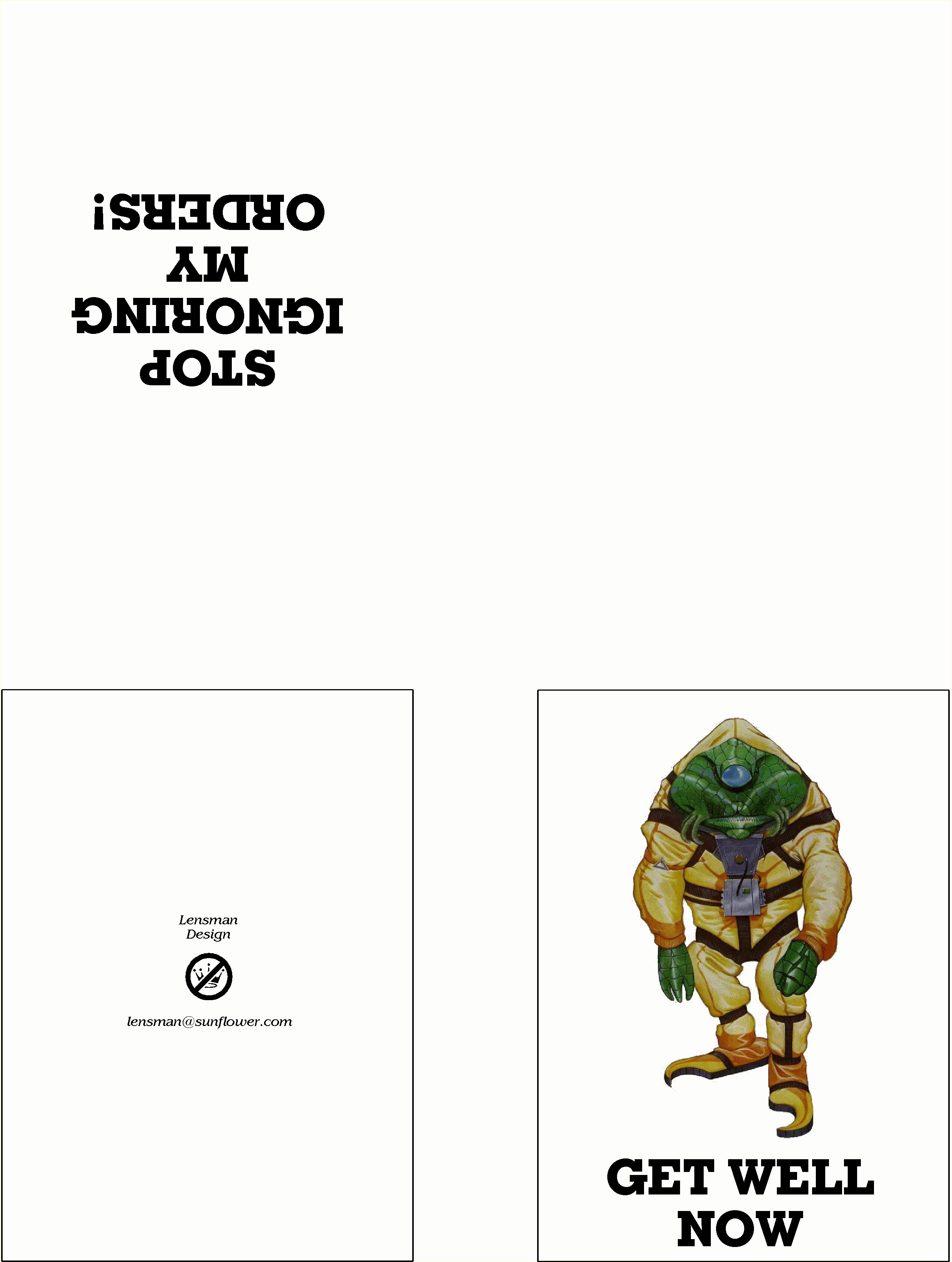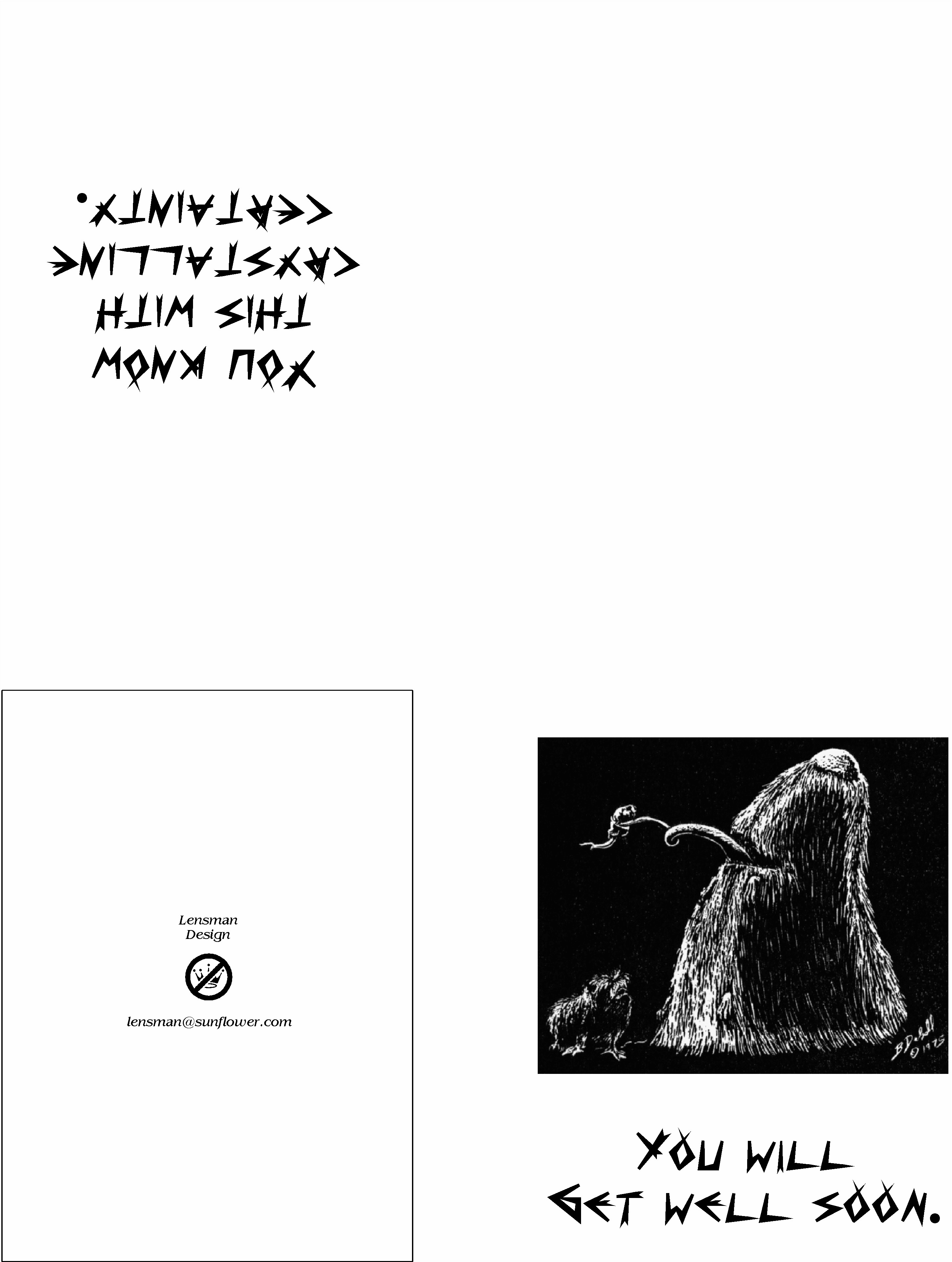 FRONT: "Get well soon, monkeyboy!" - Kzin #1-- (female) Nurse Dinner