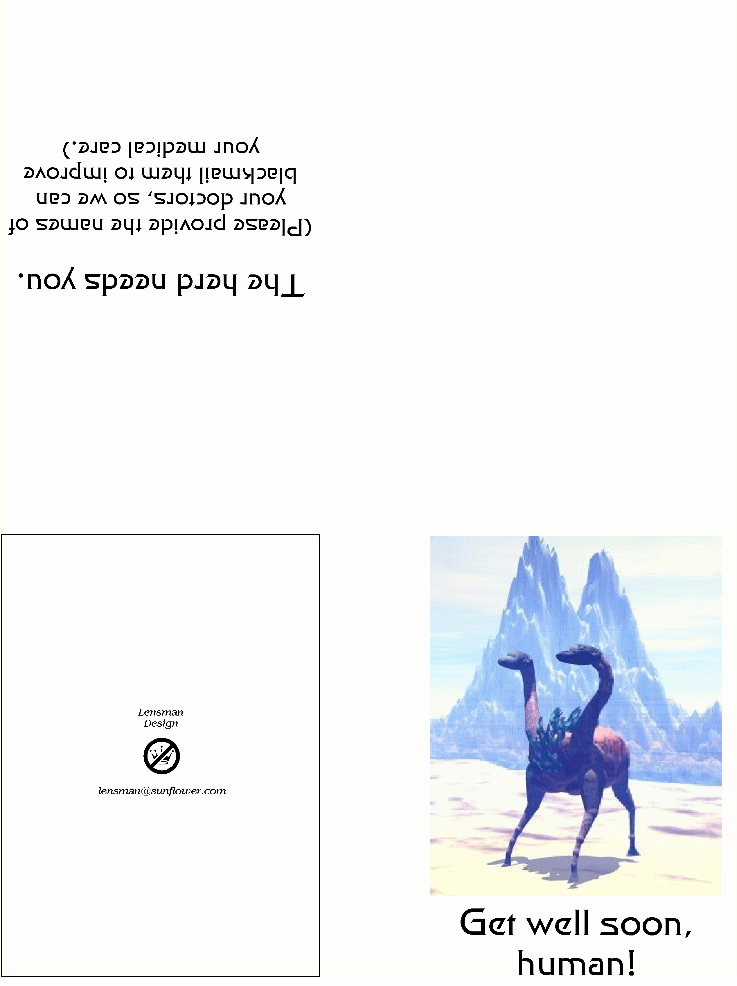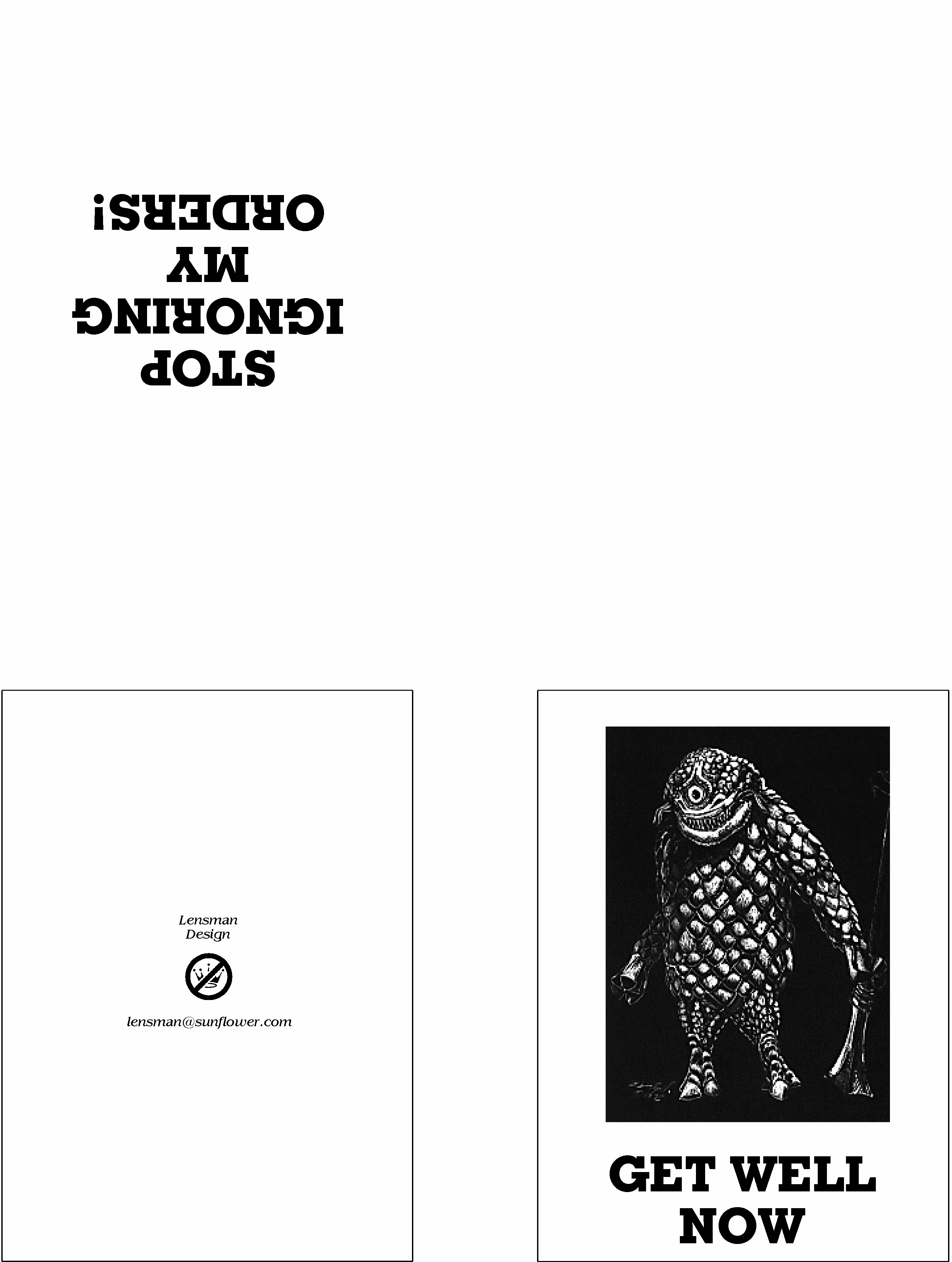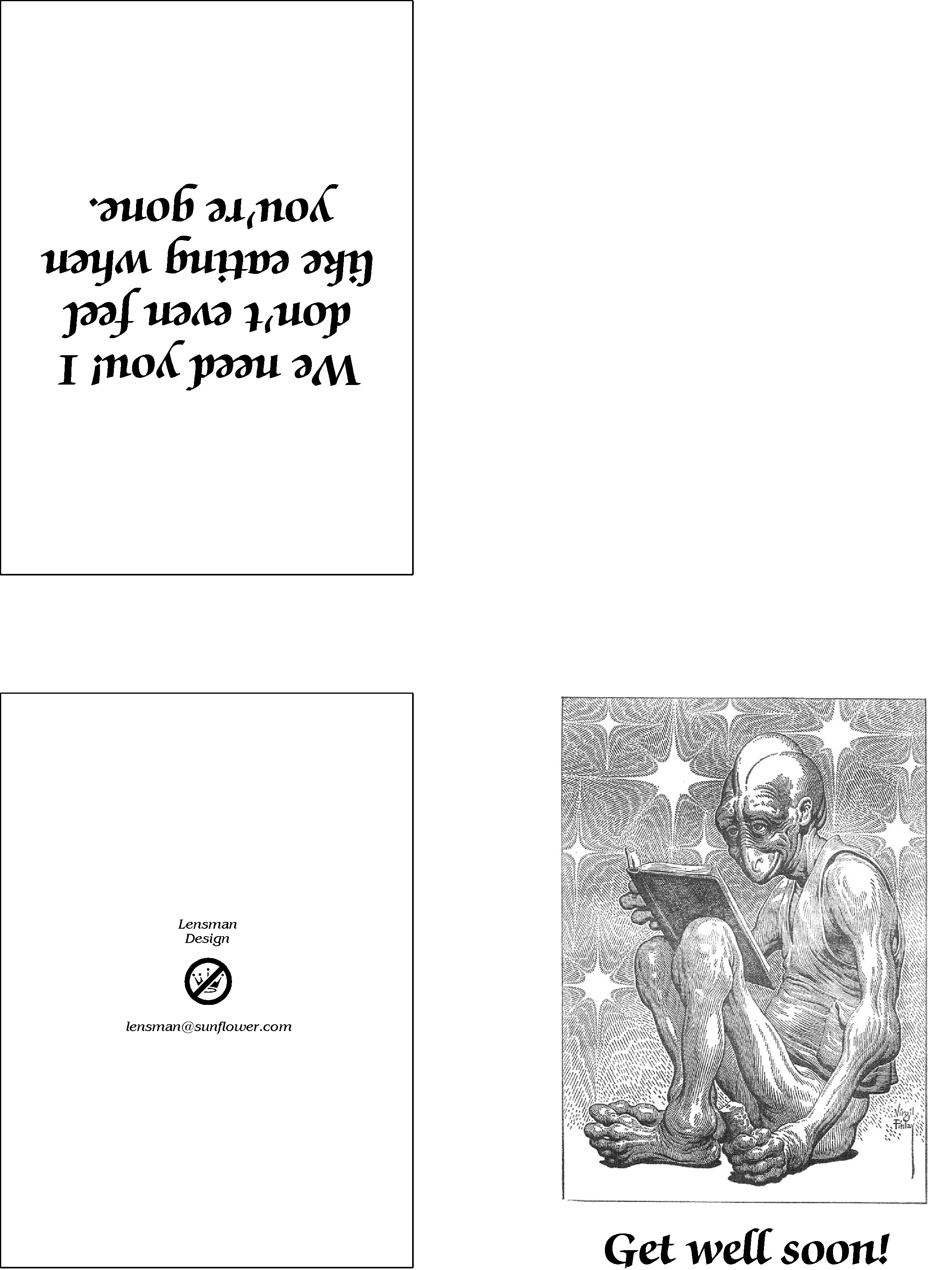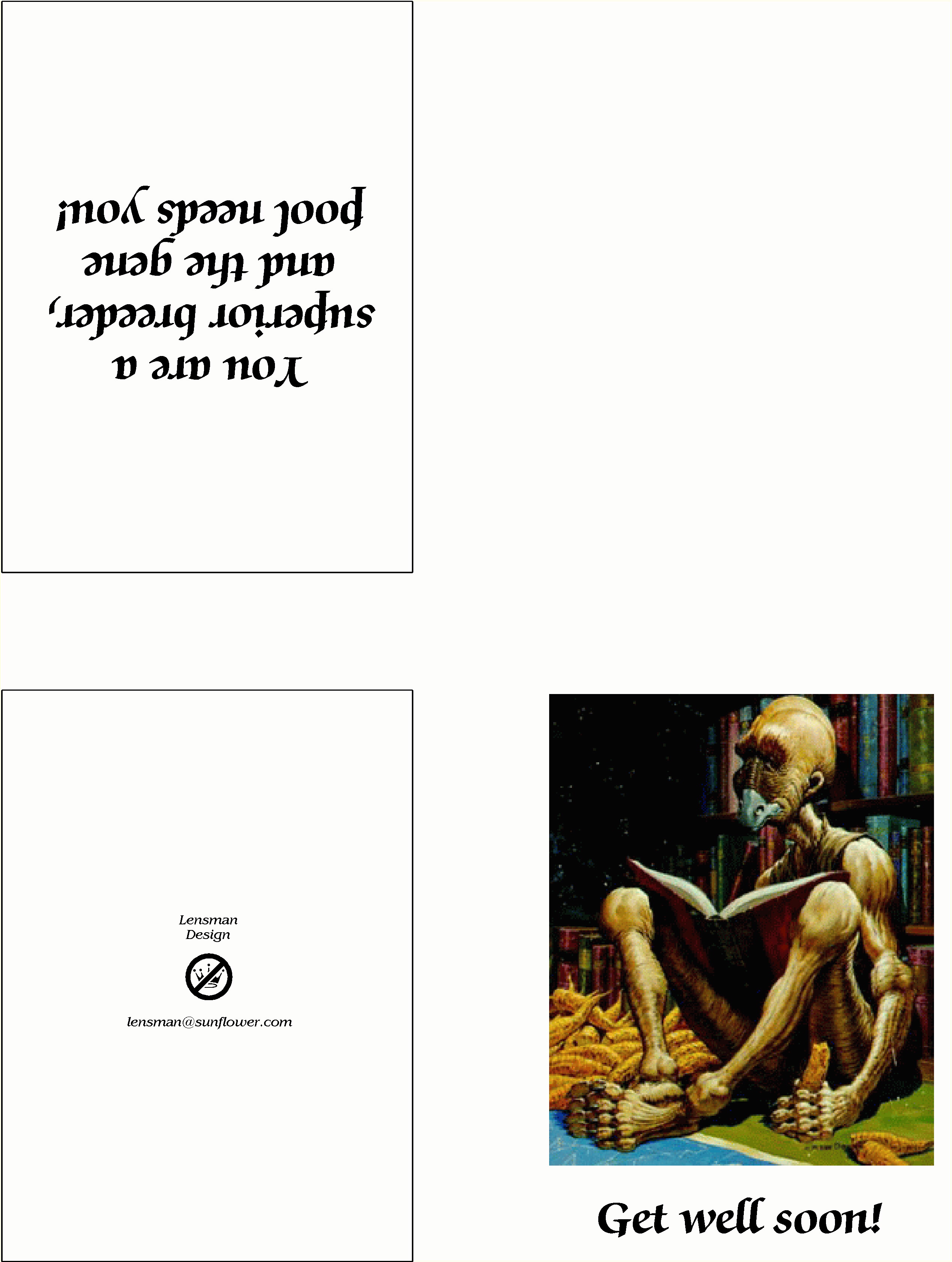 FRONT: "Get well soon, monkeyboy!" - Kzin #1-- (female) Nurse Dinner