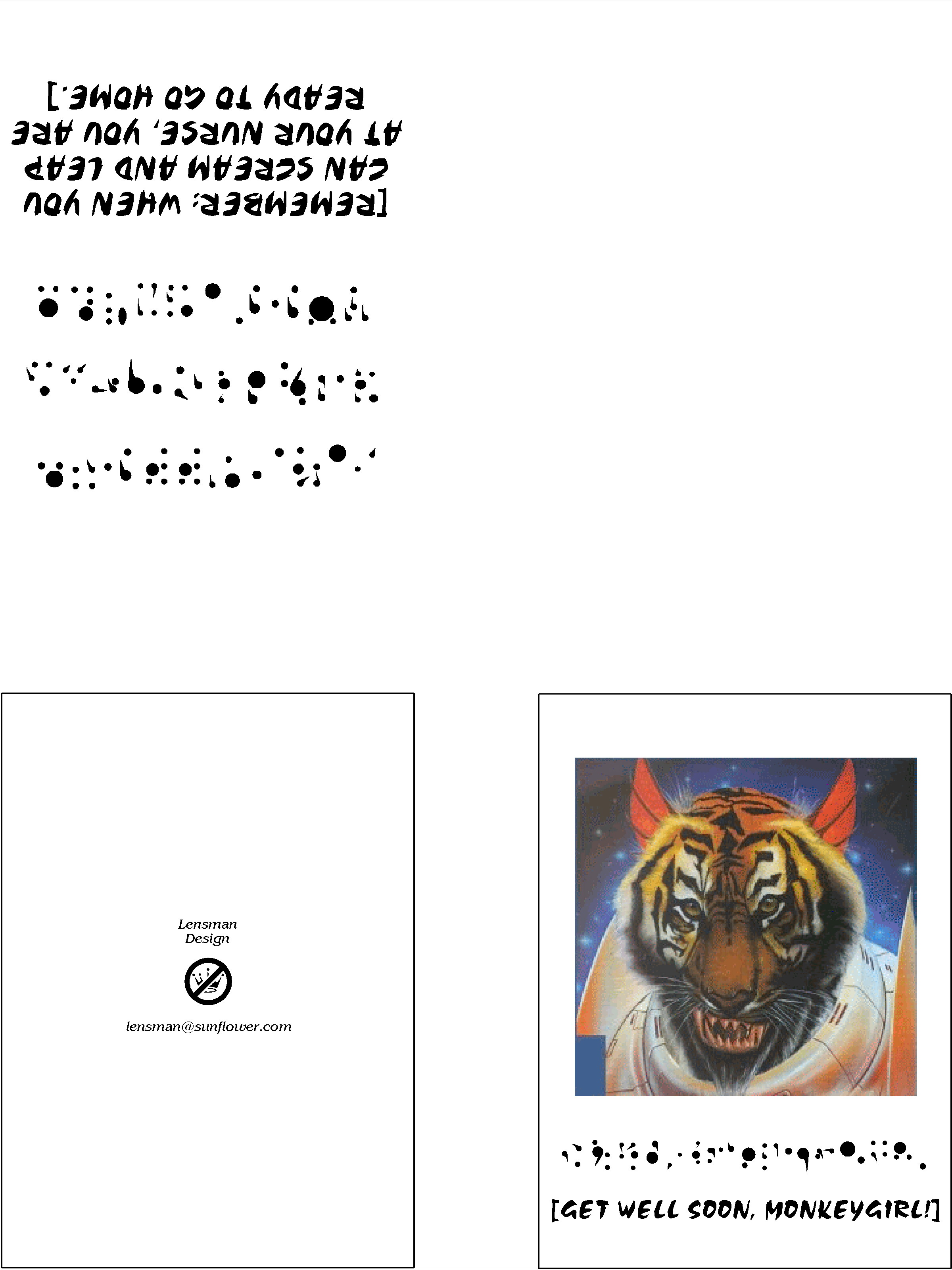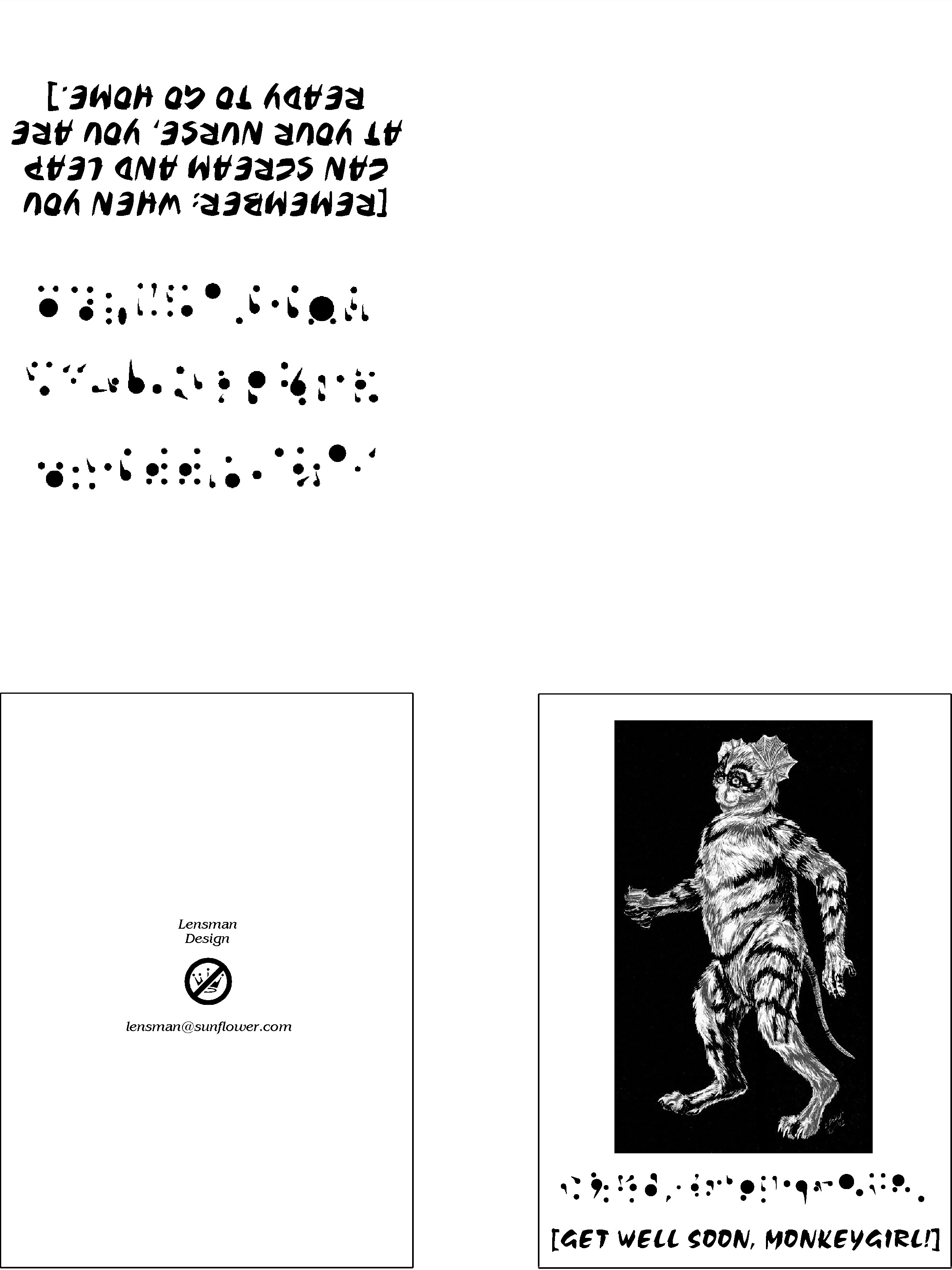 INSIDE: "Remember: when you can scream and leap at your nurse, you are ready to go home." - . Kzin #2-- (female) Scream and Leap